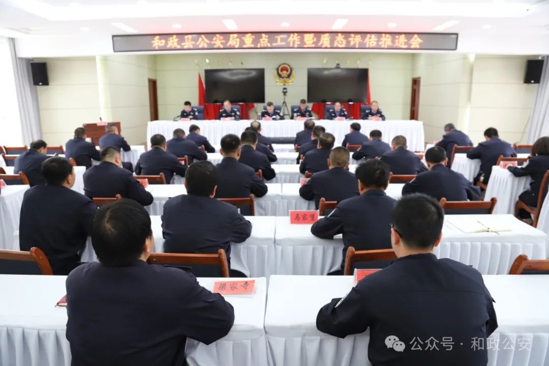 4月9日下午,和政县公安局召开重点工作暨质态评估推进会。副县长、县公安局党委书记、局长段兴参加会议并讲话,县局党委副书记、政委赵文明主持会议,局党委班子成员及各所队室负责人参加会议。