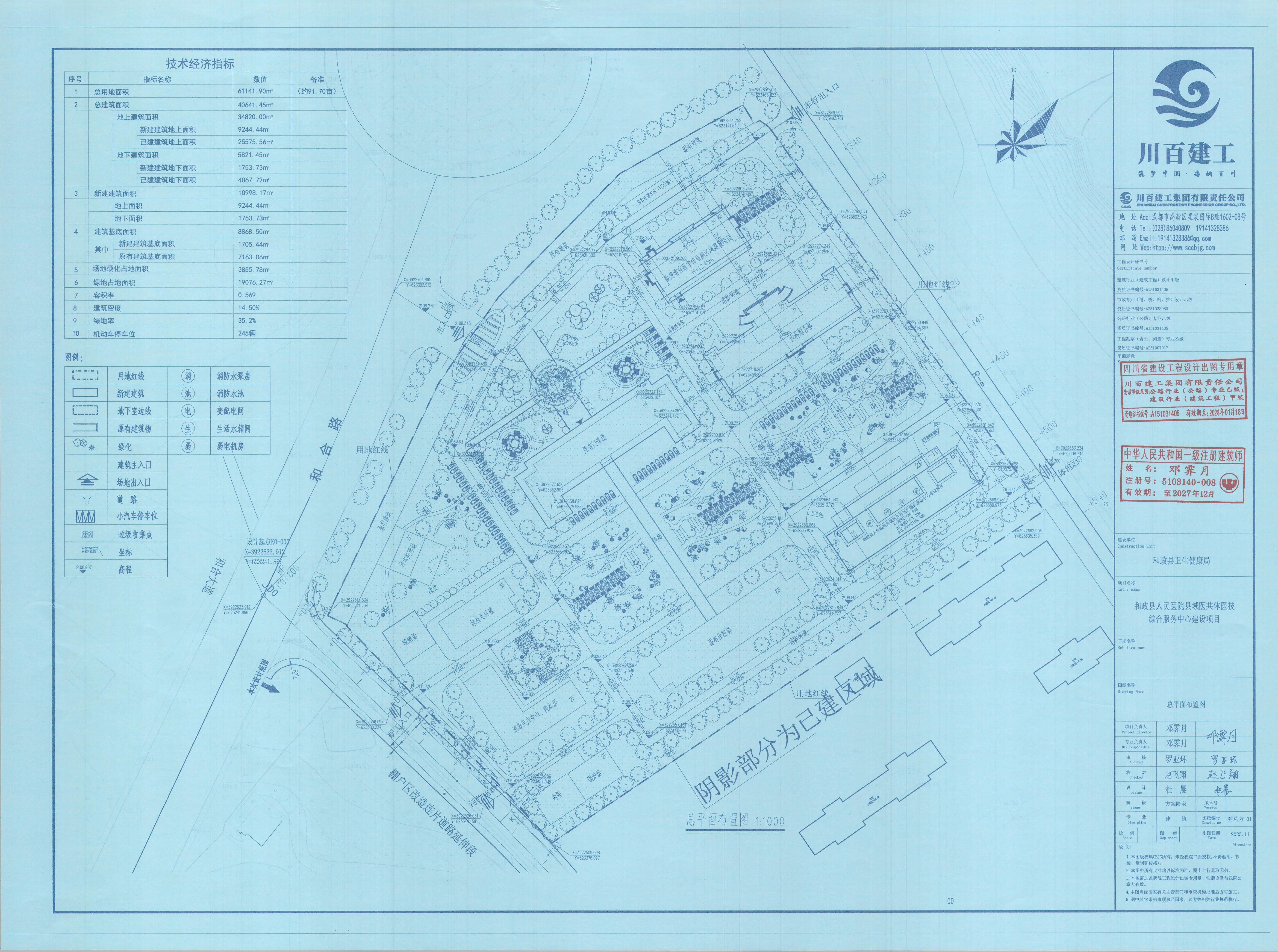 7.建设规模:本期建设总建筑面积40641.45平方米,其中新建总建筑面积10998.17平方米,地上建筑面积9244.44平方米,地下建筑面积1753.73平方米,容积率0.569,建筑密度14.50%,绿地率35.2%。